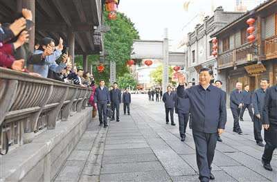 2021年3月22日至25日,中共中央总书记、国家主席、中央军委主席习近平在福建考察。这是24日下午,习近平在福州三坊七巷历史文化街区考察时,向游客和市民招手致意。