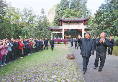 2021年3月22日至25日,中共中央总书记、国家主席、中央军委主席习近平在福建考察。这是22日下午,习近平在南平武夷山朱熹园考察时,向游客招手致意。