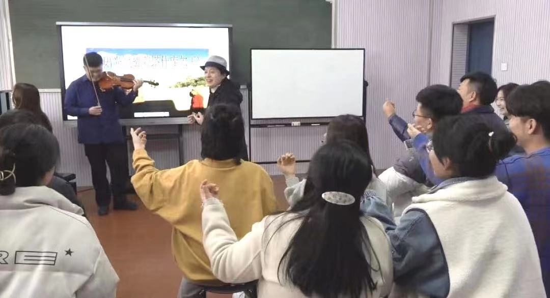 王蕾老师及其领衔的教学团队所主讲的《音乐鉴赏》是一门全校通识核心课程,课程以“审美导向、多觉联动、能力本位、重在体验”为核心理念,以“思政铸魂、美育启智、艺术润心”为建设目标,在教学中创新构建“多感官联动”教学理念,增加学生的课堂参与度,运用新的方法形成音乐通识课程的听觉化、视觉化、表演化和立体化教学,全程渗透“美育+思政”将音乐教育与我国人民对美好生活的积极向往的使命相结合,打造一个有生命力和活力的音乐课堂。