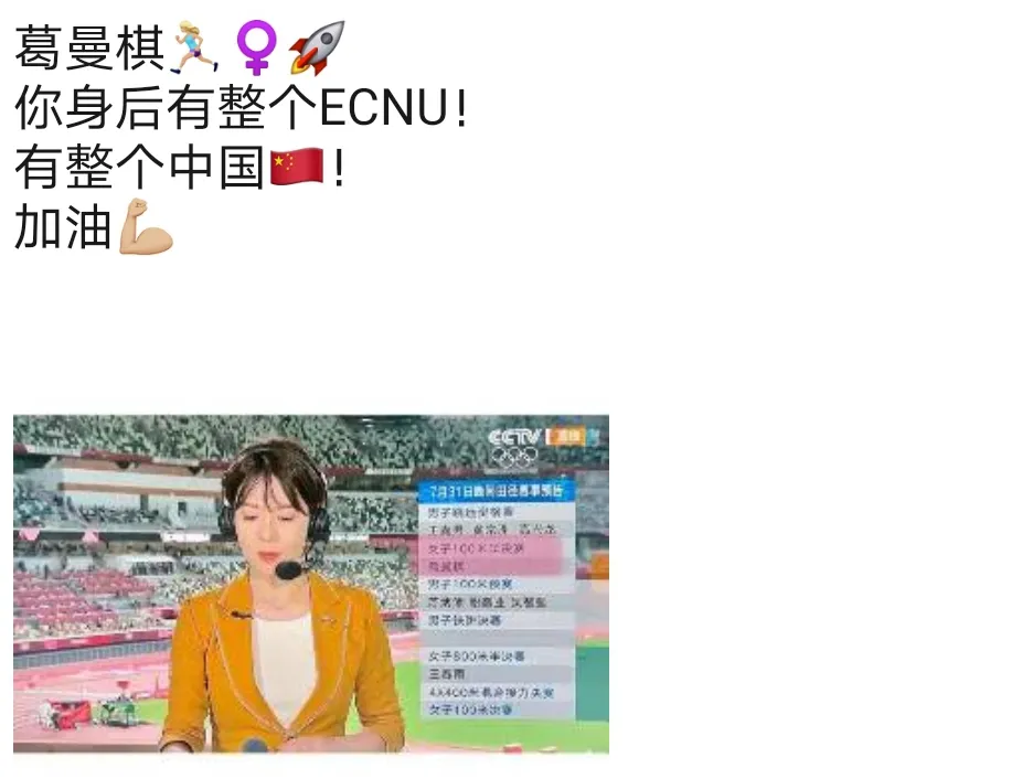 在东京奥运会女子100米半决赛中,华东师大学子葛曼棋在第二小组第三道出场,最终跑出了11秒22的成绩,位列小组第7。