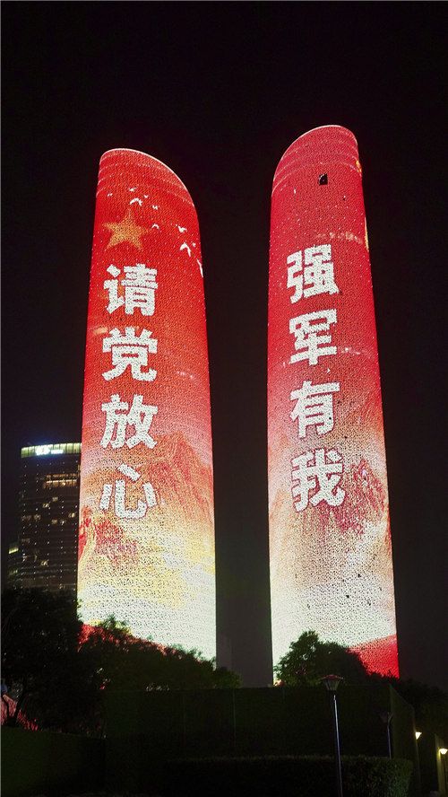 2021年7月31日,成都地标性建筑首次亮起征兵公益广告。