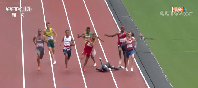 来自南苏丹的难民运动员詹姆斯·希恩杰克今年是第二次参加奥运。在7月31日进行的田径男子800米预赛中,詹姆斯意外摔倒。当詹姆斯准备切线到内道时,与一名选手发生碰撞摔倒在地。不过,他马上就爬起来,继续朝着终点奔跑。最终,詹姆斯以2分02秒04的成绩最后一个到达终点线。对于发生这样的意外,看得出詹姆斯充满了失落与无奈。
