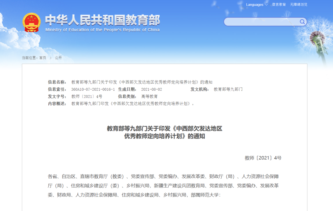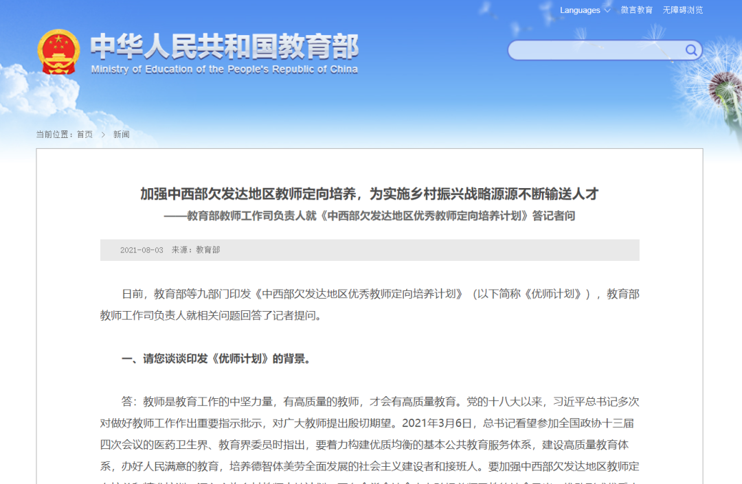 解读《中西部欠发达地区优秀教师定向培养计划》