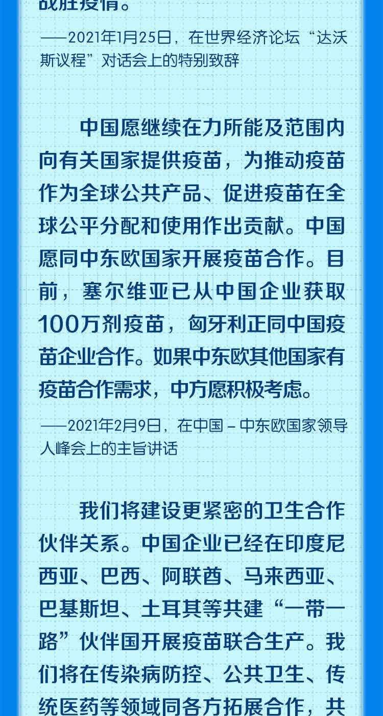 新冠肺炎疫情暴发以来,习近平主席多次在国际场合积极推进疫苗国际合作进程,主张要让疫苗成为全球公共产品,为推动构建人类卫生健康共同体、夺取全球抗疫斗争的最终胜利贡献中国智慧和中国方案。央视网《联播+》特梳理习主席相关讲话,与您一同学习。