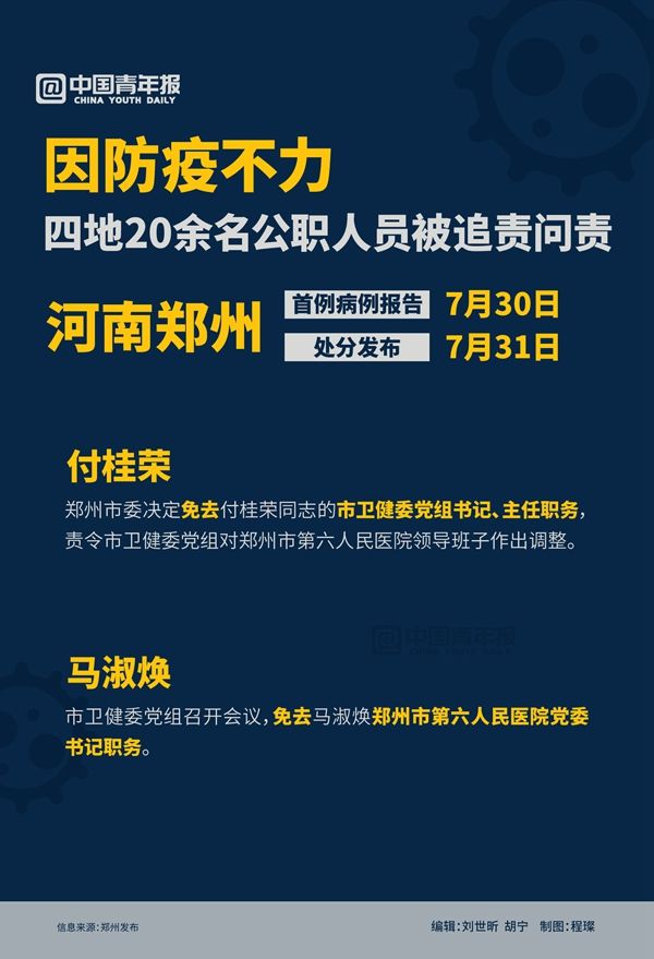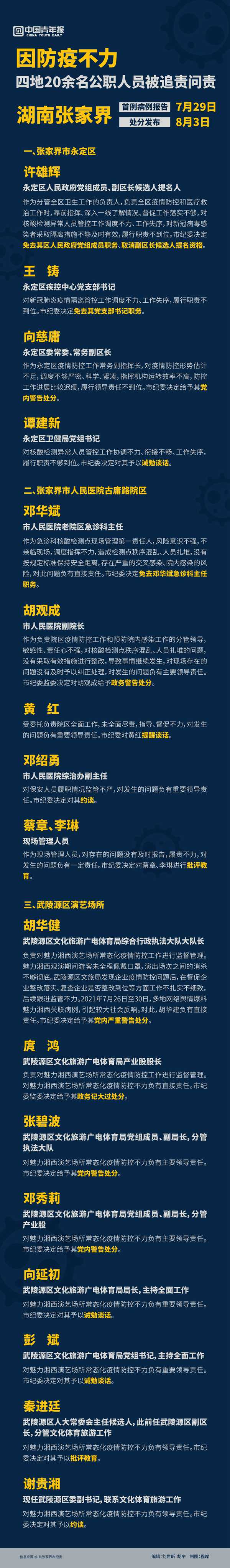今日,江苏省纪委监委通报了对南京禄口国际机场疫情防控不力问题的部分调查处理结果:对包括南京市副市长、市卫健委党委书记在内的6人追责问责。据公开信息统计,目前,江苏南京、湖南张家界、河南郑州、山东烟台四地已对20余名公职人员进行问责,其他有关责任人员正在调查中。(图/程璨 文/胡宁)