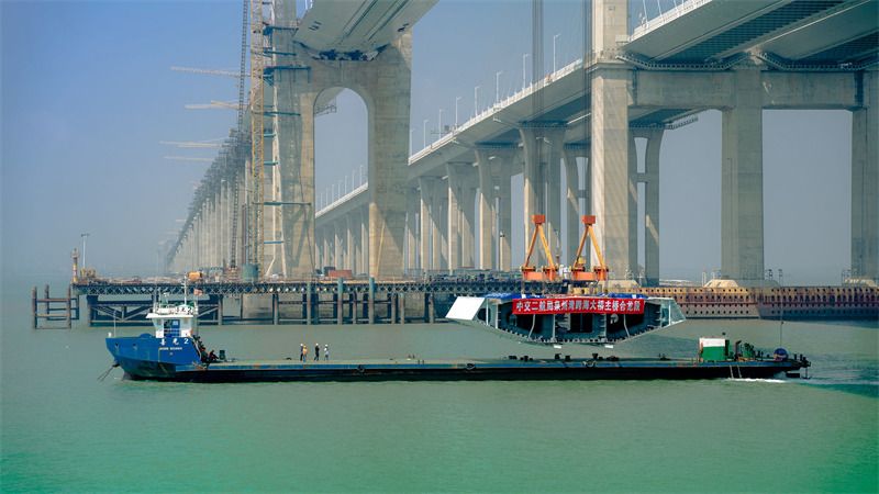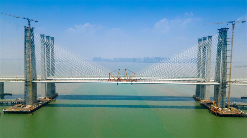 2021年8月6日,福建福州,随着中跨合龙段最后一榀钢箱梁安装完成,我国首座跨海高铁桥——福厦高铁泉州湾跨海大桥主桥成功合龙。