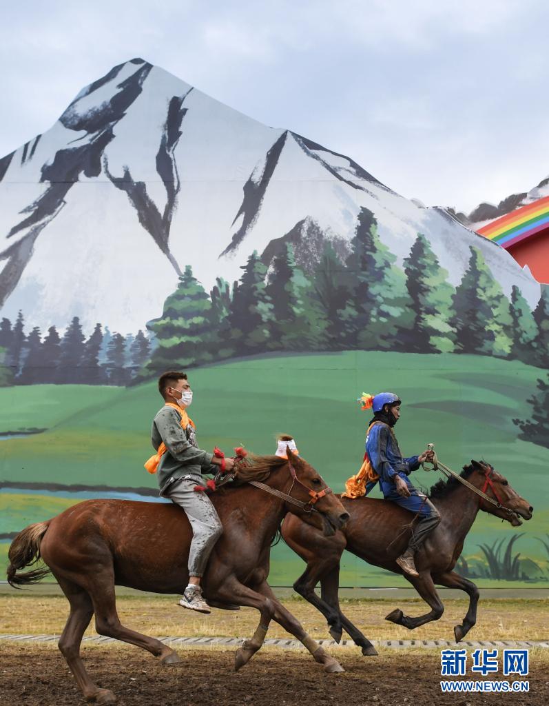 当日,青海省玉树藏族自治州玉树市赛马场举办赛马活动,庆祝青海省玉树藏族自治州成立70周年。