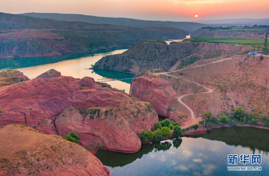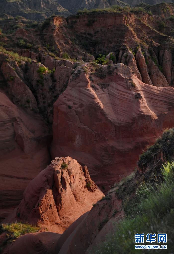 陕西省靖边县龙洲镇波浪谷丹霞景区地处陕北黄土高原,峡谷四面环山,线谷、巷谷、绝壁等构成了特有的波浪形砂岩地貌,景观独特。