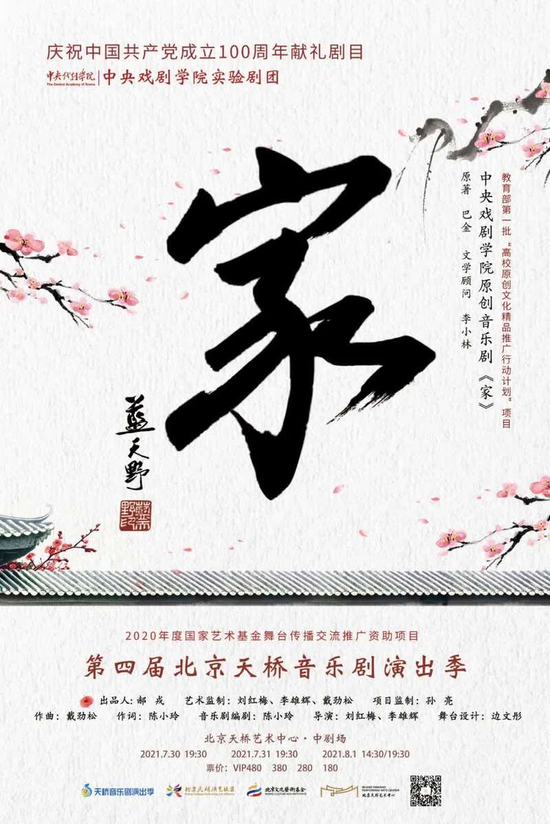 《家》是我国文学巨匠巴金先生“激流三部曲”的开篇之作,也是最负盛名的一部作品。文以载道、歌以咏志、剧以颂史,音乐剧《家》将这部深蕴着“五四”精神的经典作品搬上舞台,向党的百年华诞献礼。