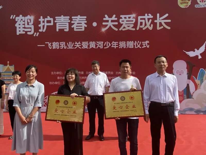 活动现场,刘永祥和刘燕霞分别受捐1000万元和400万元的爱心营养包;何金鹏向兰州市和安宁区移交了捐赠物资的质量保证书。刘永祥、杨海霞分别为爱心企业黑龙江飞鹤乳业销售有限公司、新疆喜阳阳爱婴百货有限公司颁发荣誉牌匾。