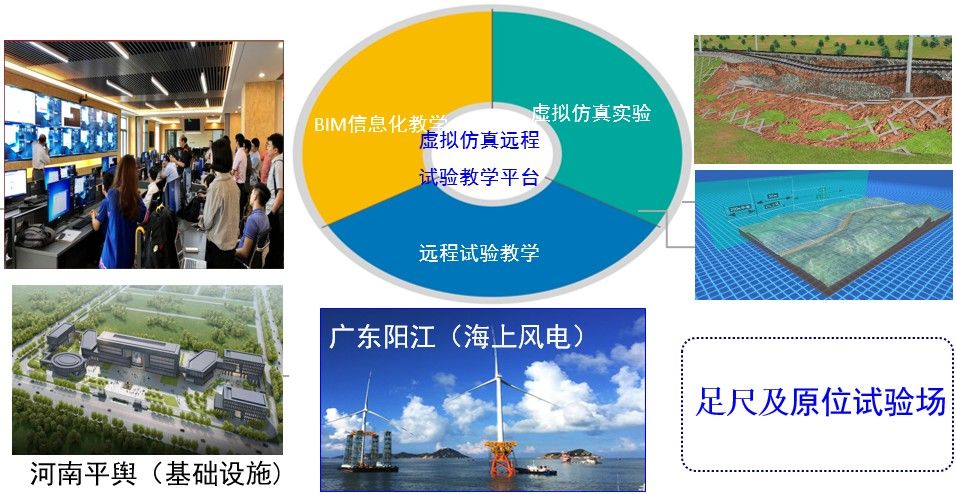 依托中山大学河南研究院和“坝道工程医院”,以“互(物)联网+足尺及原位试验场”为基础,建设“场网一体”实践育人共享平台,探索“多主体合作、多形式投入”共建模式,汇聚足尺及原位试验设施优质资源(如东北大学建设的隧道试验场,石家庄铁道大学建设的铁路实训基地,中铁装备集团和中山大学联合建设的地下工程盾构试验场等),推进科学研究和人才培养的有机融合。在河南平舆建设综合足尺试验场,第一期政府投资4亿元,占地266亩,建设路基与道面工程、建筑地基基础、建筑防水、隧道地铁与综合管廊、地下管道、水土污染防控等6个足尺试验场;二期工程占地265亩,规划建设土质堤坝、穿黄盾构、公路环道等3个足尺试验系统。