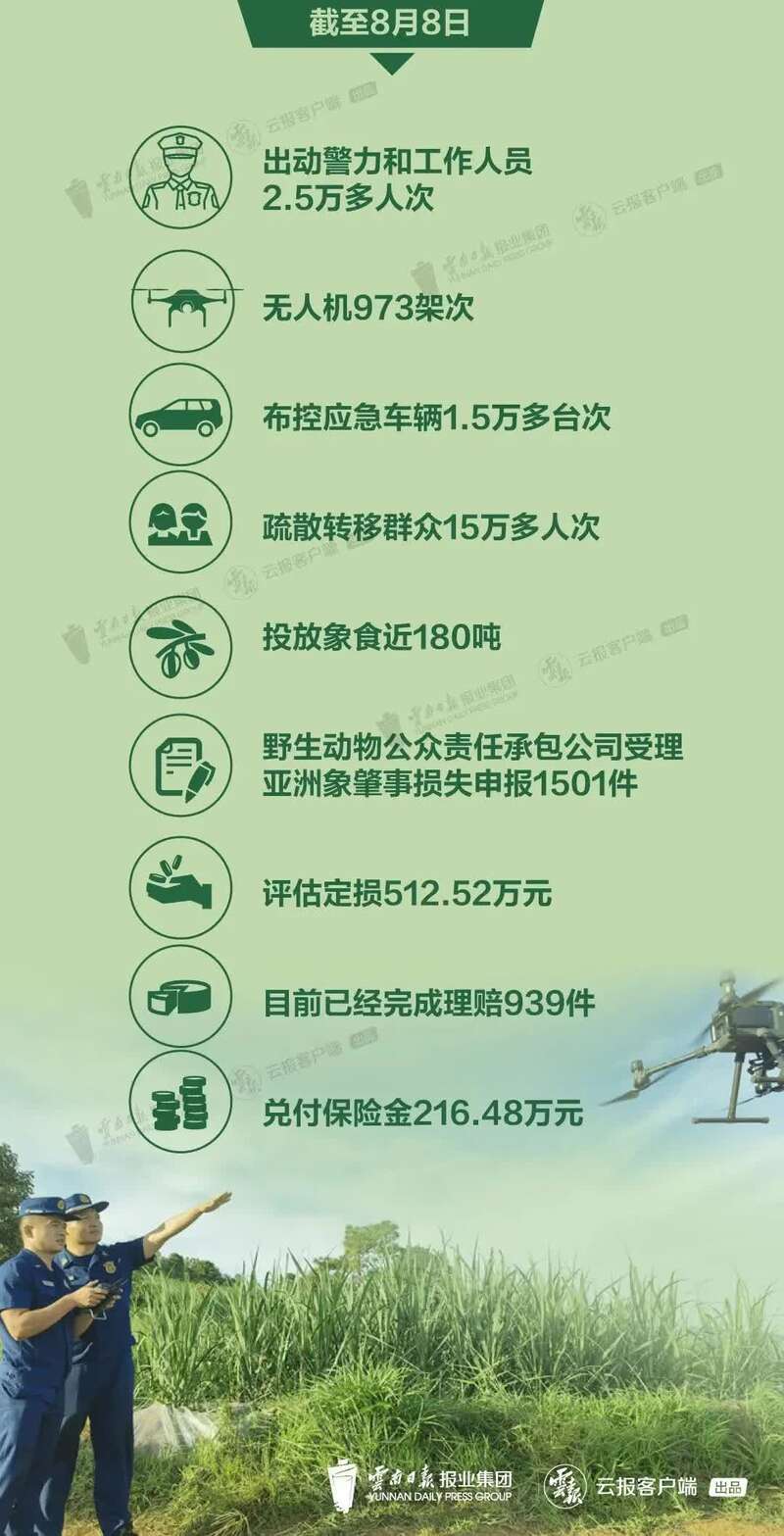 制定了“盯象、管人、助迁、理赔”八字方针。通过地面人员跟踪与无人机监测相结合的方式,对象群实施24小时立体监测,实时掌握和研判象群活动路线。对亚洲象可能经过的区域,提前进行交通管制,疏散转移群众,避免人象接触。采取封堵重要路口、动态鸣警、科学投放食物等方式,多次成功阻止象群进入人群密集区域,帮助象群折返迁移。及时理赔,启动野生动物公众责任保险定损赔付工作,维护人民群众合法权益。