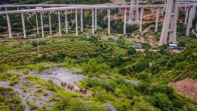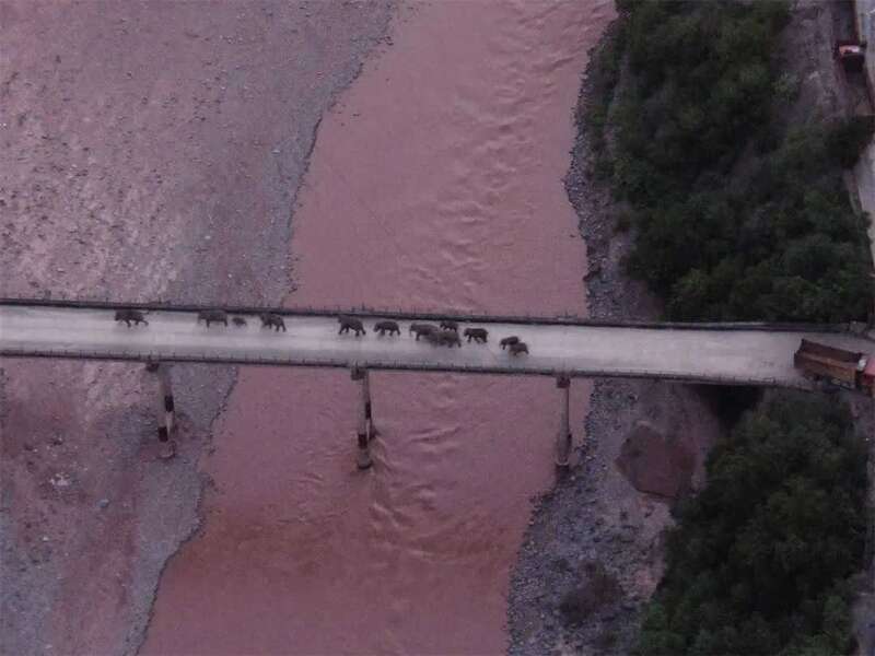 象群经过元江桥。云南省森林消防总队供图