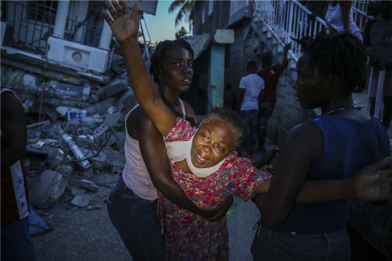 当地时间2021年8月14日,海地莱凯,当地遭遇地震后一片废墟,大量人员受伤。当地时间14日上午海地西部尼普斯省发生里氏7.3级地震。随后,海地多地发生多次余震。