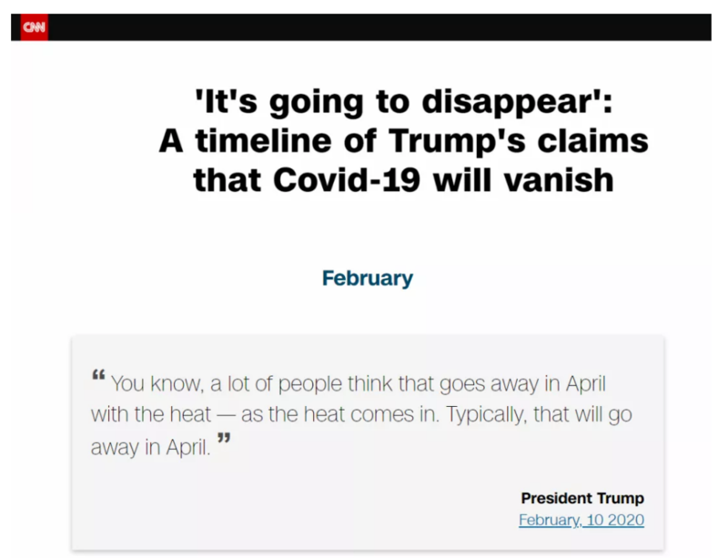 早在疫情初期,时任美国政府一再忽视疫情警告,试图淡化疫情风险。时任美国领导人在去年2月疫情在美国蔓延的早期就曾直言:新冠病毒会像奇迹一样消失。然而,一年多过去了,新冠病毒并没有如他判断的那样消失,至今依然在美国持续肆虐。