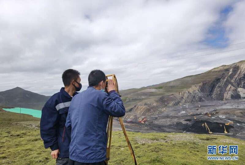 8月16日,测绘人员在青海柴达尔煤矿冒顶事故救援现场勘测定位,为确定打钻救援位置提供准确依据。新华社记者 张军 摄