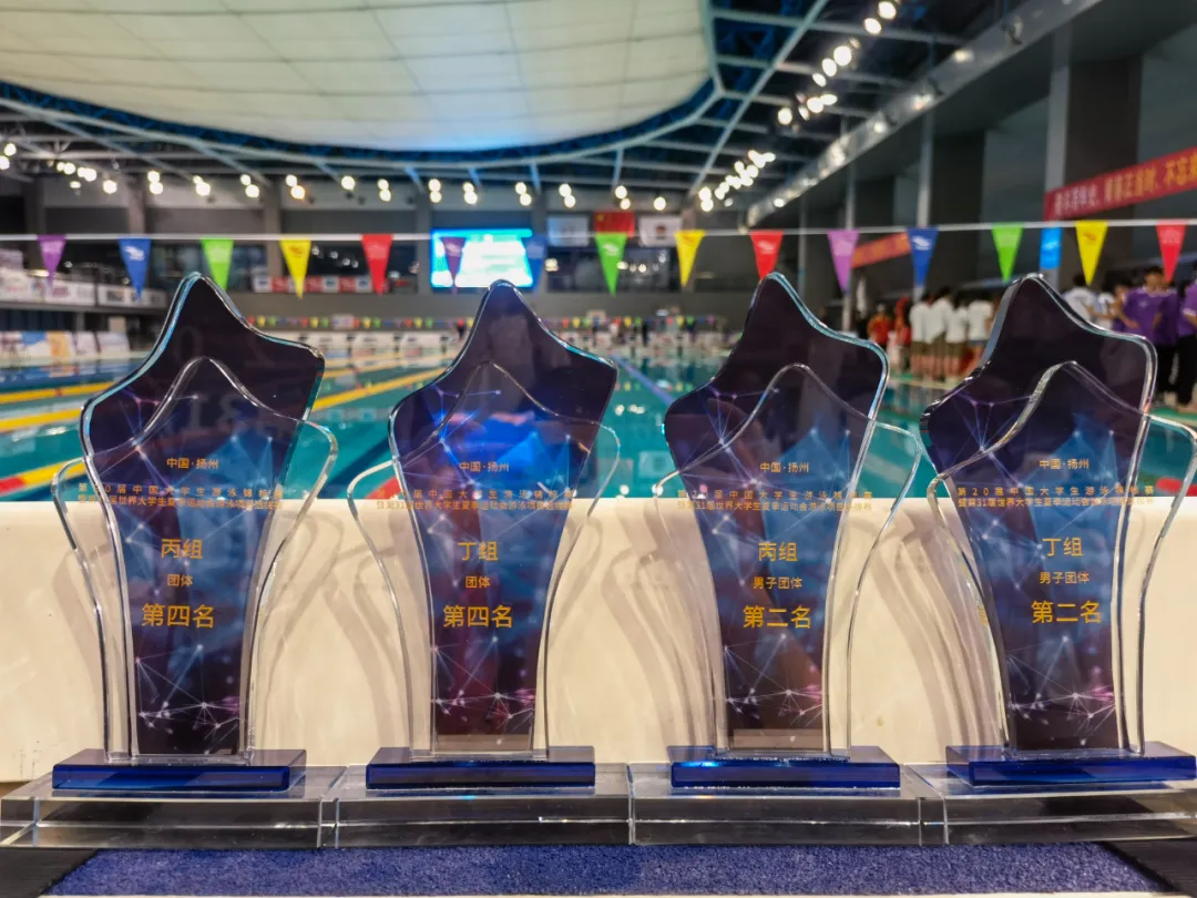 中山大学在第20届大学生游泳锦标赛上获得的奖杯