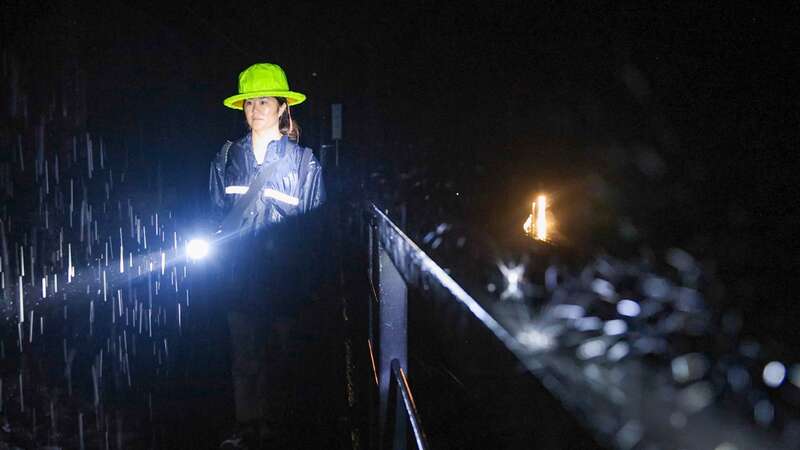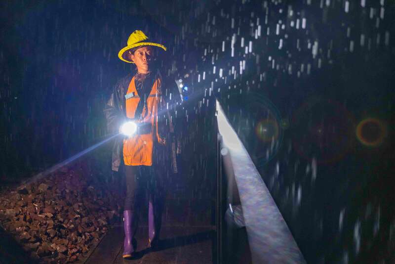 中国青年报客户端讯( 徐章位 中青报·中青网记者张文凌)8月17日23时45分,一道道闪电伴随着雷声划破漆黑的夜幕,大雨倾泻而下。在中国铁路昆明局曲靖工务段管辖的六盘水至红果铁路105公里看守点,看守女工蒋云环迅速穿戴上雨衣,交待同事邓春莲留守接车,自己则出门巡查去了。