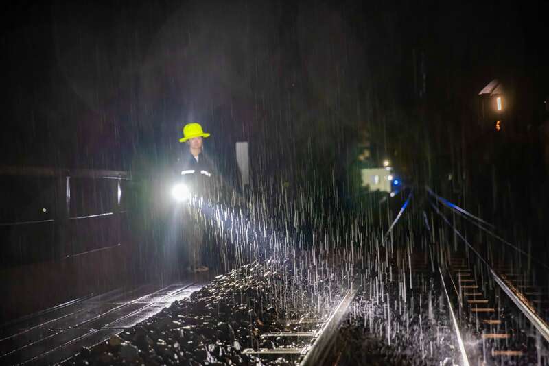 蒋云环雨夜检查铁路设备。徐章位/摄影
