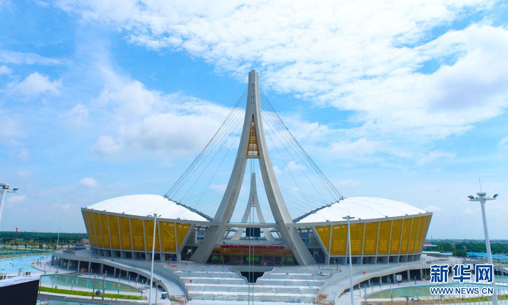 由中国政府援建、中国建筑股份有限公司承建的柬埔寨国家体育场项目日前通过竣工验收。该体育场坐落在柬首都金边北部市郊,两端99米高的人字形吊塔融合了柬埔寨的“合十礼”、古代建筑屋脊等传统元素,通过钢索拉起看台上方的罩棚膜,如一艘巨轮扬起风帆。