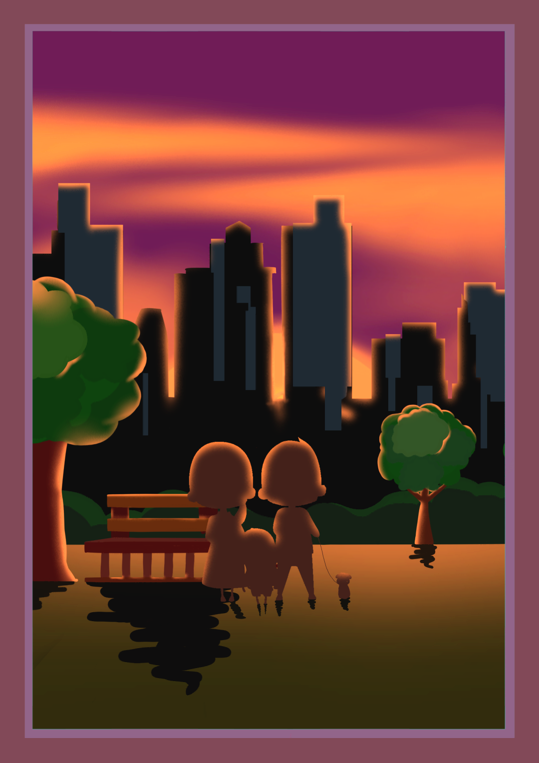 和家人一起沿着晚霞散步