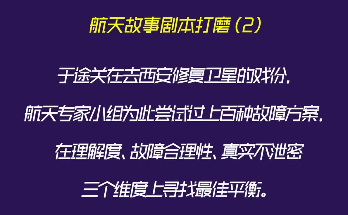 据王之介绍,这些设定都是有过调查采访的,原著作者顾漫在前期写作过程中,就拜访了北京的五院、上海的八院等航天相关单位。到了拍摄阶段,更是有一位跟组的航天相关专业顾问,来负责审看和编写剧中一部分航天相关情节。包括剧中部分场景也是与上海的八院合作,进入其中进行拍摄的。“直到播出过程中,我们还在后期调整一些航天细节,希望做到至少在航天这一块,航天工作者们看的时候不会有疑义。”王之说道。
