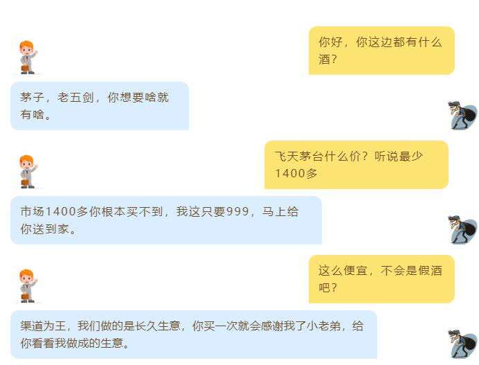 除了免费抽中茅台酒,宣称内部价购买茅台、在微信群发布虚假购酒链接等新型骗局,亦让人防不胜防。