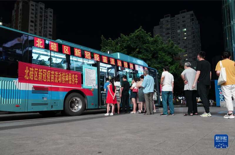 日前,重庆市北碚区北温泉街道在嘉陵风情步行街开通了夜间新冠疫苗接种服务车,接种时间从18点开始到22点结束。连日来,当地采取定点与流动相结合的方式,把疫苗接种流动服务车开进工地、学校、工厂等地,方便人们就近接种疫苗。
