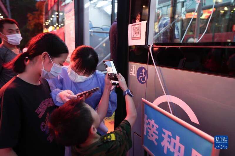 8月20日晚,市民在重庆市嘉陵风情步行街流动疫苗接种服务车内接种新冠疫苗。