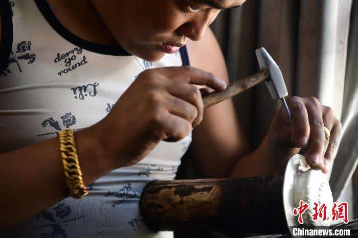 “纯手工打造才能传承最原始的民族文化”。近日,西藏日喀则市桑珠孜区扎西吉彩村,国家级非物质文化遗产——扎西吉彩金银锻铜技艺的57岁传承人拉琼接受中新网记者采访时如是说。