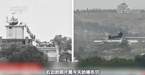 CNN主播:那是美国历史上最具象征和挫败感的时刻,左边的照片是美国外交人员仓促撤离,南越首都已经瓦解,右边的照片是今天的喀布尔,美国的外交人员被逼迫仓促逃离大使馆。