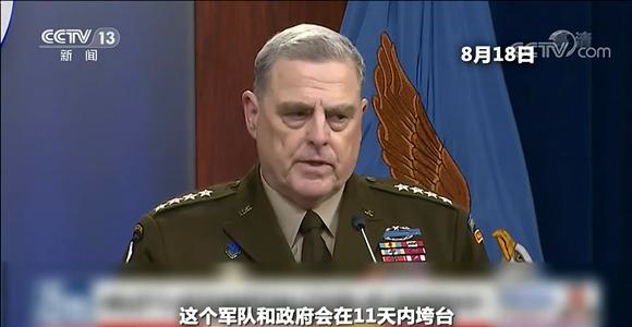 美国参联会主席 米利:军方预估的(阿富汗政府军)快速瓦解的时间,是在美国离开后的数周、数月甚至是数年,我或者任何人都没有料到,有任何迹象表明,这个军队和政府会在11天内垮台。