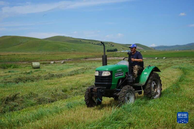 立秋过后,内蒙古兴安盟牧民驾驶机械开始打草工作,为牛羊过冬储备草料。此次秋季打草将持续至9月中旬。今夏,兴安盟草原雨水丰沛,加之禁牧工作有效落实,草原产草量较往年有所增加。