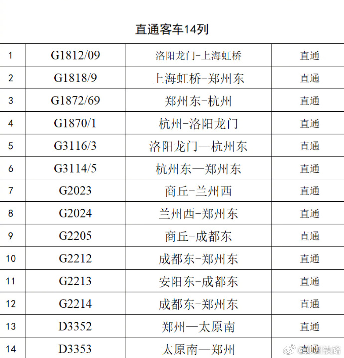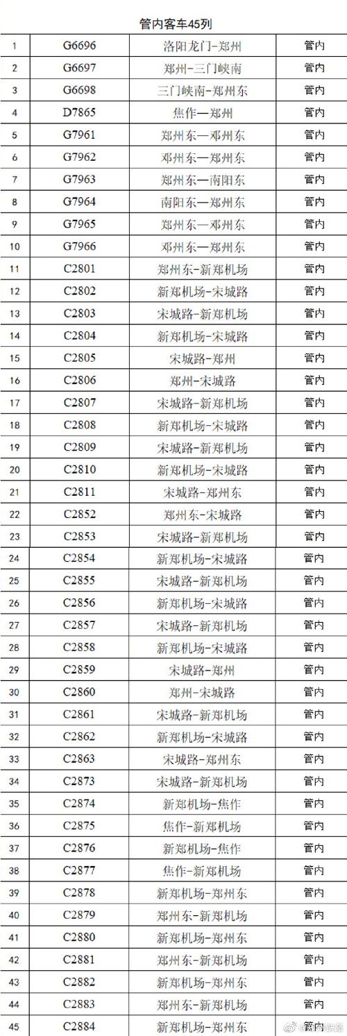 郑州铁路部门22日停运客车59列
