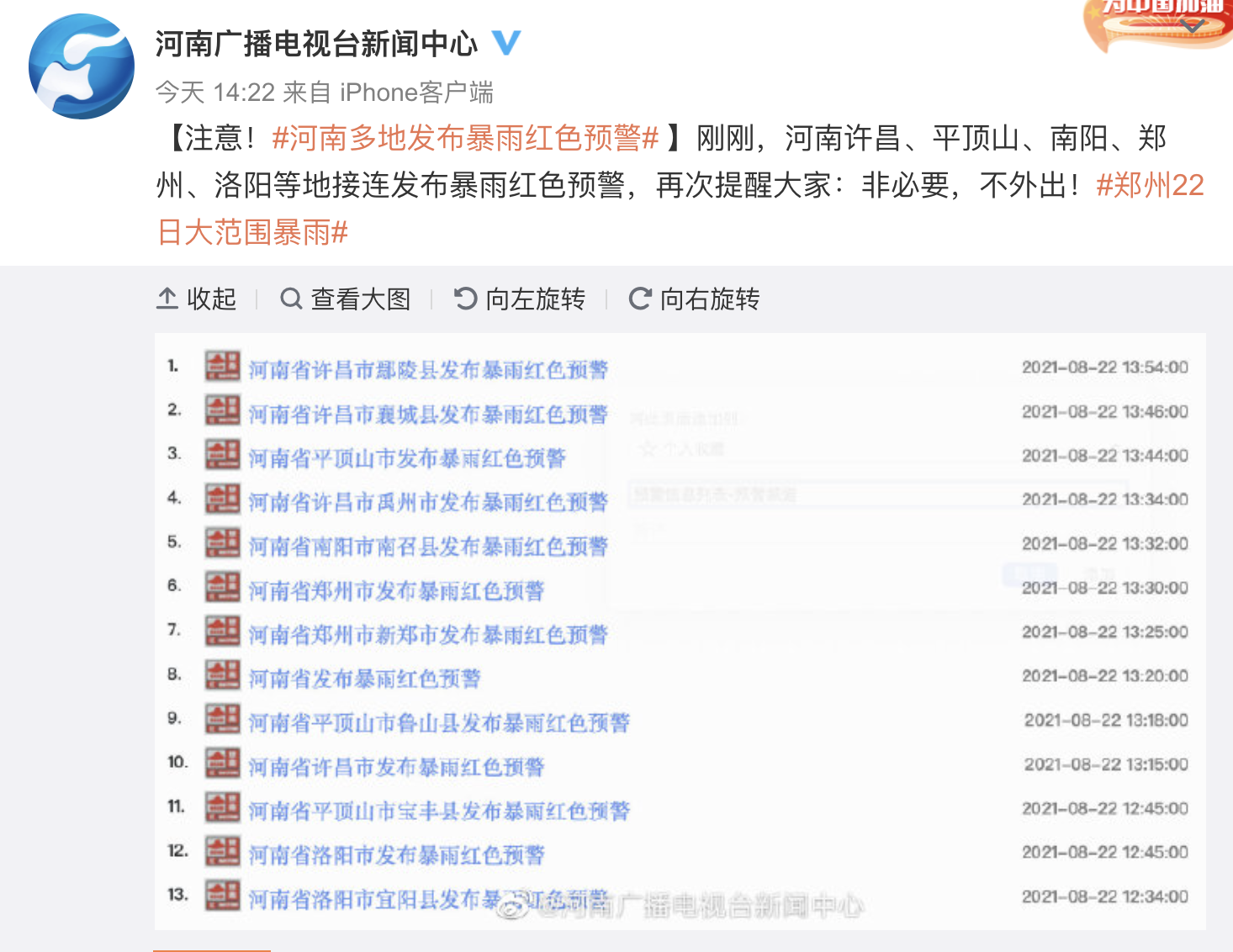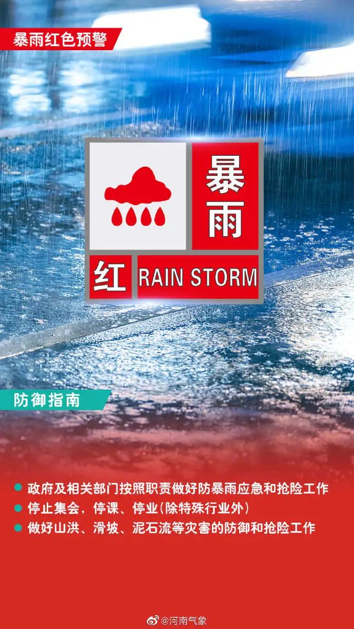 22日午后,河南多地发布暴雨红色预警!