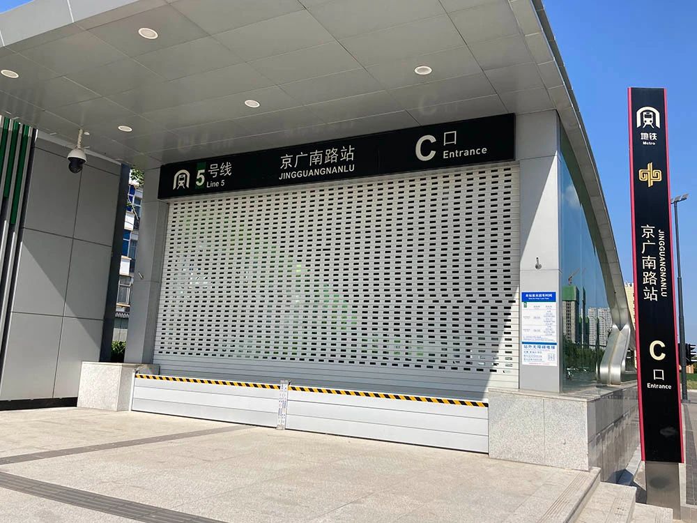 地铁口安装的防水挡板 澎湃新闻记者 段彦超 图