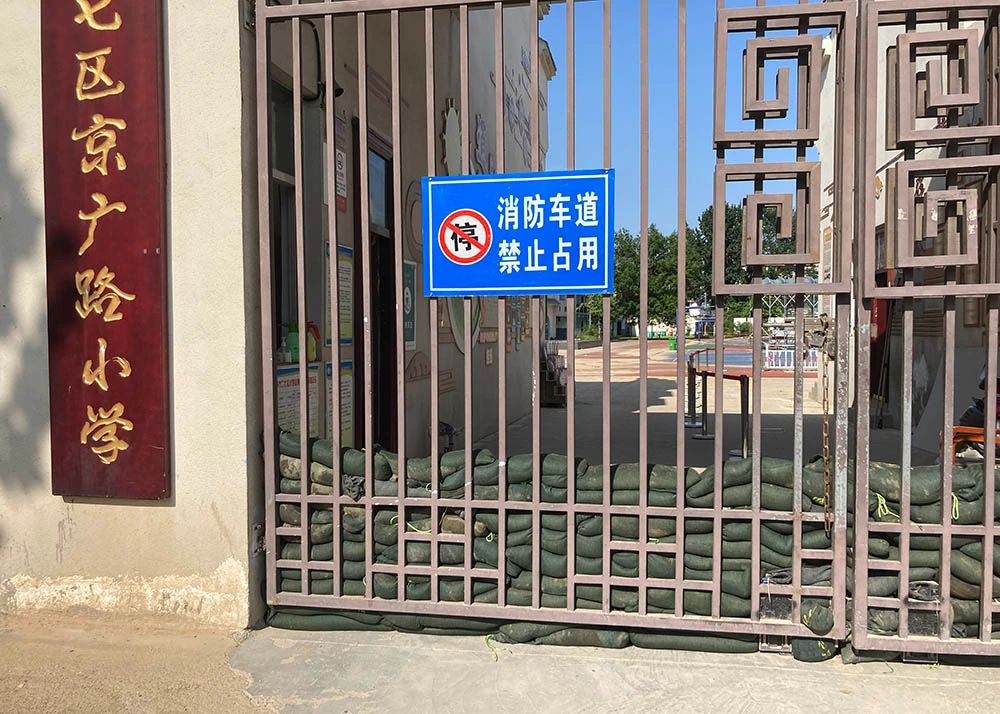 已在门口堆好沙袋的小学 澎湃新闻记者 段彦超 图