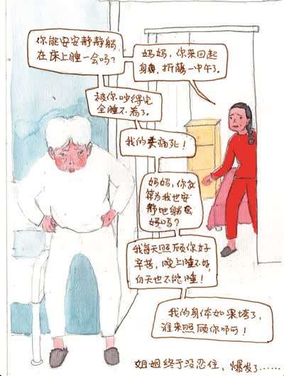 画中的清雅,也是现实中的清雅,崩溃地喊道:“你能安安静静在床上睡一会儿吗?”“我每天照顾你好辛苦,晚上睡不好,白天也不能睡!”“我该怎么办呀!”“我知道这是病症。”“我不应该冲妈妈发脾气啊!”“我忍不住!我好压抑!”……