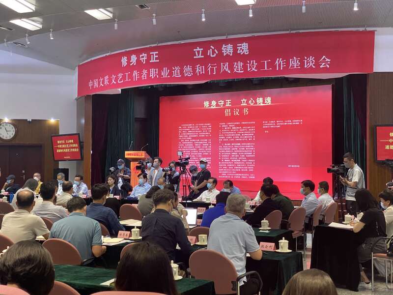 中国青年报客户端北京8月24日电(中青报·中青网记者 沈杰群)今日,“修身守正 立心铸魂——中国文联文艺工作者职业道德和行风建设工作座谈会”在京举行。会议针对“饭圈”文化、“顶流”现象等和近期文艺界及娱乐圈集中出现的违法失德现象开展座谈交流,表达了对坚决处置违法失德问题、治理不良粉丝文化乱象等涉及行风建设、行业引领等方面工作的共识和态度。