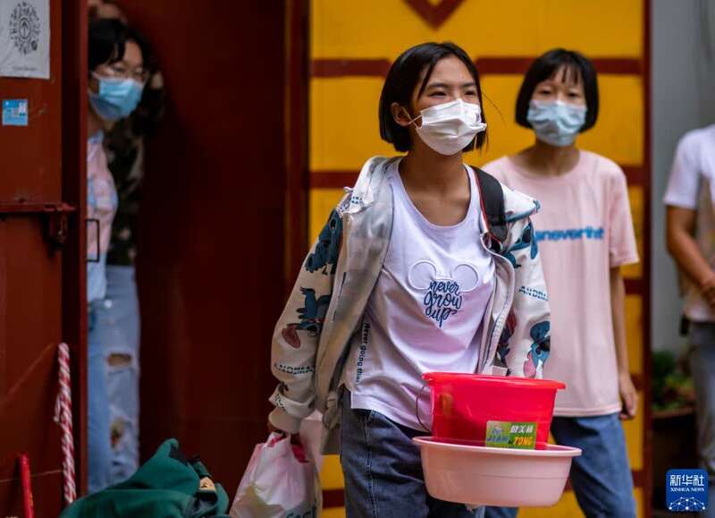 杨丽梅带着生活用具进入校园(8月23日摄)。新华社记者 江文耀 摄