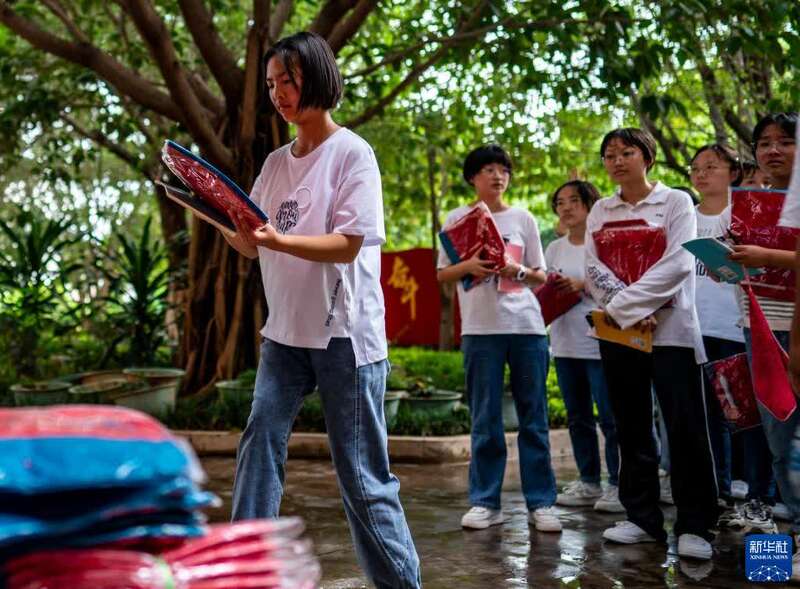 杨丽梅在学校领取新校服(8月23日摄)。新华社记者 江文耀 摄