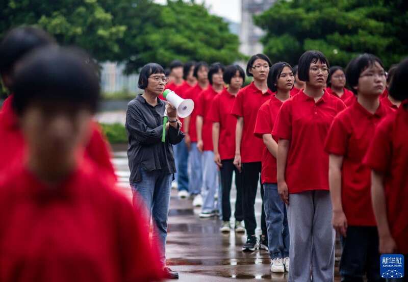 8月24日,张桂梅督促学生好好锻炼身体。新华社记者 江文耀 摄