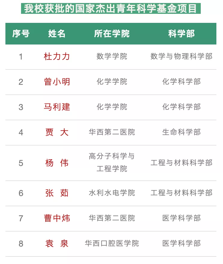 我校此批次共有583个项目获得资助,包括杰出青年科学基金项目8项。我校获准的国家自然科学基金项目总数、杰出青年科学基金项目数等均创学校历史新高。