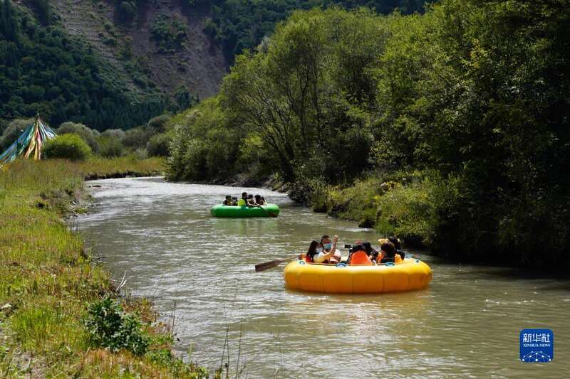 8月24日,游客在九寨沟爱情海景区漂流。新华社记者 刘梦琪 摄