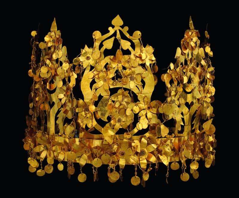 王冠 出自蒂拉丘地6号墓(公元25年-50年)。图片来自清华大学艺术博物馆
