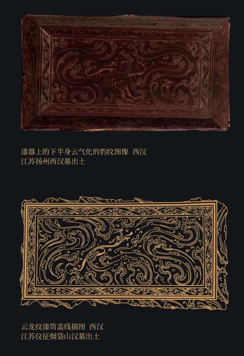 蒂拉丘地4号墓出土了用于栓系短剑的一对豹纹扣饰,其蜷曲飞腾的身体后半部分与云气融为一体,轻舞飞扬,与我国西汉漆器、织锦上行云流水的云龙纹如出一辙。有学者分析,可能是汉武帝为抗击匈奴而派使者出使乌孙国,并进行和亲,使得原江都国(国都今江苏扬州)的漆器被带到了中亚。