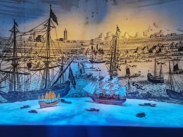 与其他外销品一样,外销画也是世界了解中国的媒介之一,以西洋技法画清代广州社会风俗民情的外销画画室,传达给观众的是中西文化的交流与融合。展览最后,以“从广州到上海”为尾声,将1760年代广州港、1850年代外滩、今日洋山港相对比,展现上海独特的区位优势和惊人的发展速度。