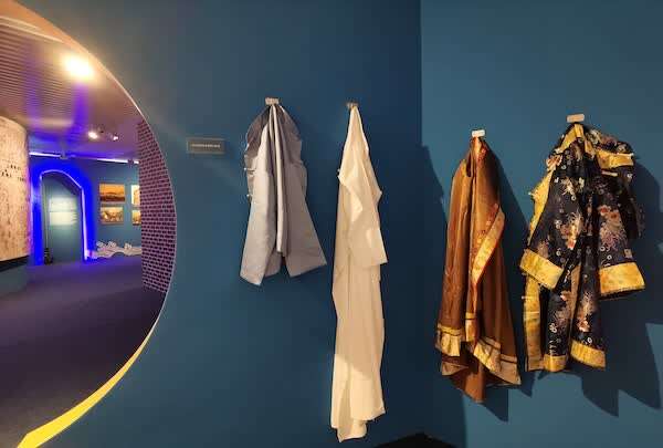 展厅内还设置了中国传统服饰,观众可以挑选中意的服装穿上拍照打卡,仿佛置身于古时的生活,开启一场“穿越时空”的旅程。