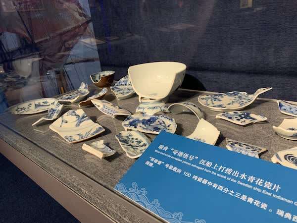 展厅现场(”哥德堡号“沉船上打捞出水青花瓷片)
