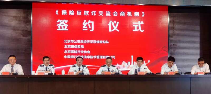 中国青年报客户端北京8月27日电(中青报·中青网记者 胡宁)今天,北京市公安局经侦总队与北京银保监局、北京保险行业协会、中国银行保险信息技术管理有限公司共同签署了《保险反欺诈交流会商机制》(以下简称:《会商机制》),四方共建保险反欺诈交流会商机制。
